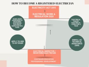 The electrical registration/license in Jamaica requires you to have a certificate/diploma in Electrical Technology, Electrical Maths/Calculation and in-depth knowledge of the electrical code(s), the JS21 JS316. You must also have a minimum of five years of training under the supervision of a licensed/registered electrician topics.